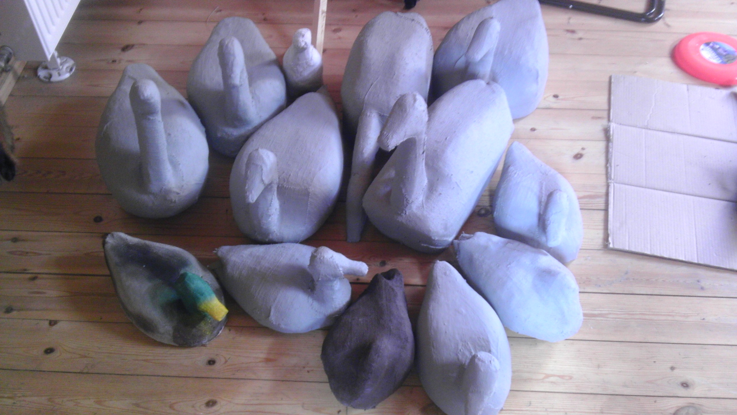vahtrame kirjutas:aega võttis, kuid oma esimesed pardikujud sain valmis. Eks nad veidi robustsed tulid, kuid esimeste kohta arvan, et kenad küll. Vaja veel lisada kiilud, et nad ilusti ujuksid ja siis võib pardijahil neid juba katsetada.