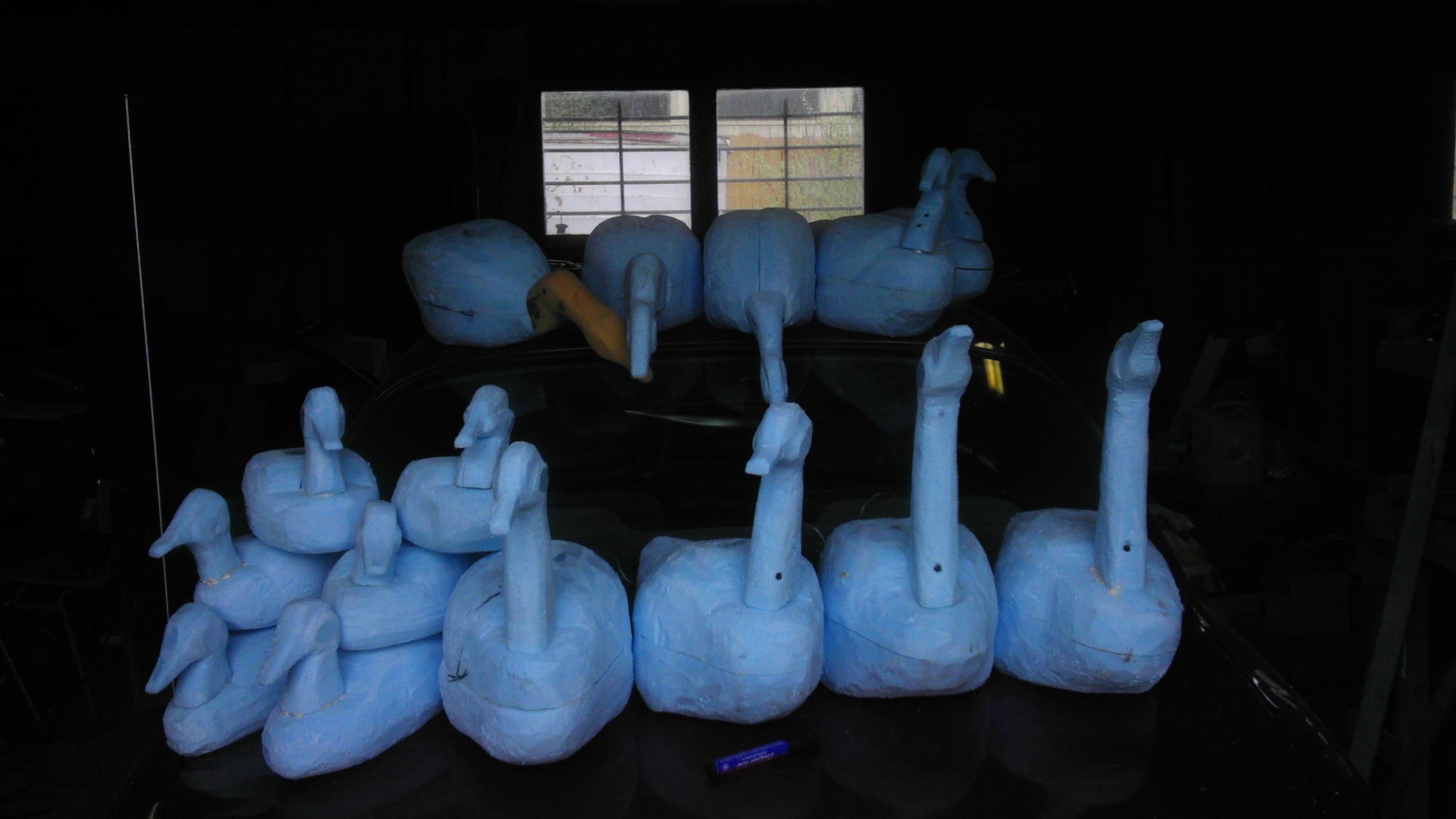 See on küll vana teema, aga mina olen hakkanud omale nüüd hane ja pardikujusid valmistama. Hetkel värvituid veel ei ole ja materjaliga ka alles katsetan, aga on juba mõned paljulubavad. põhjaks on mul styrofoam. see sinine, mida kasutatakse vundamentide kaitseks. Sealt lõikan välja sobiva kuju ning kas siis kleebin või ei. Hanede jaoks kleebin aga partidele pole vaja. seejärel lihvin endale sobiva kuju ning põhi ongi valmis. Seejärel lisan kotiriide ja pahtliga kihi, mis peaks muutma selle tugevaks ja ilmastiku kindlaks. Värvimiseni ei ole veel jõudnud :D oma hinda ka ei oska öelda, sest tegemised on katsetamis järjes ning olen proovinud erinevaid pahtleid, hüdroisolatsiooni materjale. Hobi rohkem :D