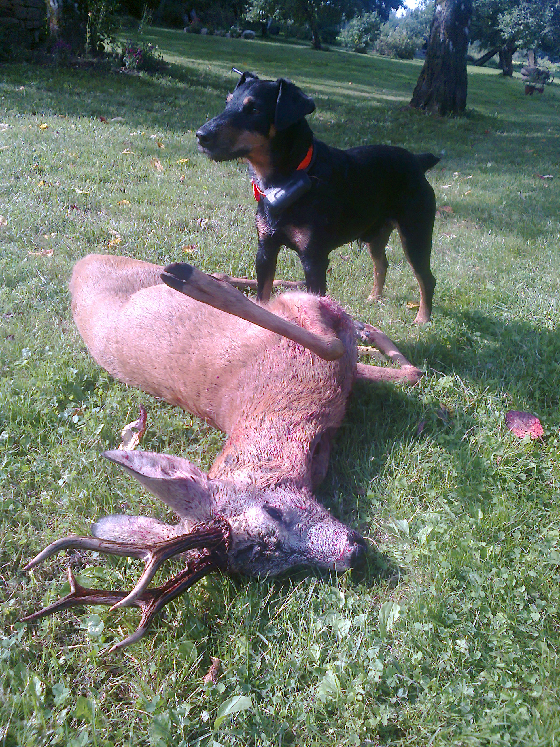 Paele lasku pani sokk jooksu,väidetavalt ei nõksatanud ka ja jooksis umbes rinnuni partsa sisse ohakad nõgesed ja muu niisugune kraam.Algul otsisme niisama midagi leidmata,siis tõime ühe taksi,kes muidu väga proff koer,aga õnnetuseks oli seakari lähedal ja taks pani nendega minema,mitu tundi ootasime koera ja siis otsustasime asja katki jätta.Hommikul läksin oma koeraga tagasi,algul pani koer ühe terve kitsega ajama,tagasi tulles keerutas koer natuke partsa sees ja siis jäi 98m peal seisma,läksin gepsu järgi koera juurde ja oligi sokk leitud.Ei midagi keerulist aga ilma koerata oleks see sokk ilmselt leidmata jäänud.
