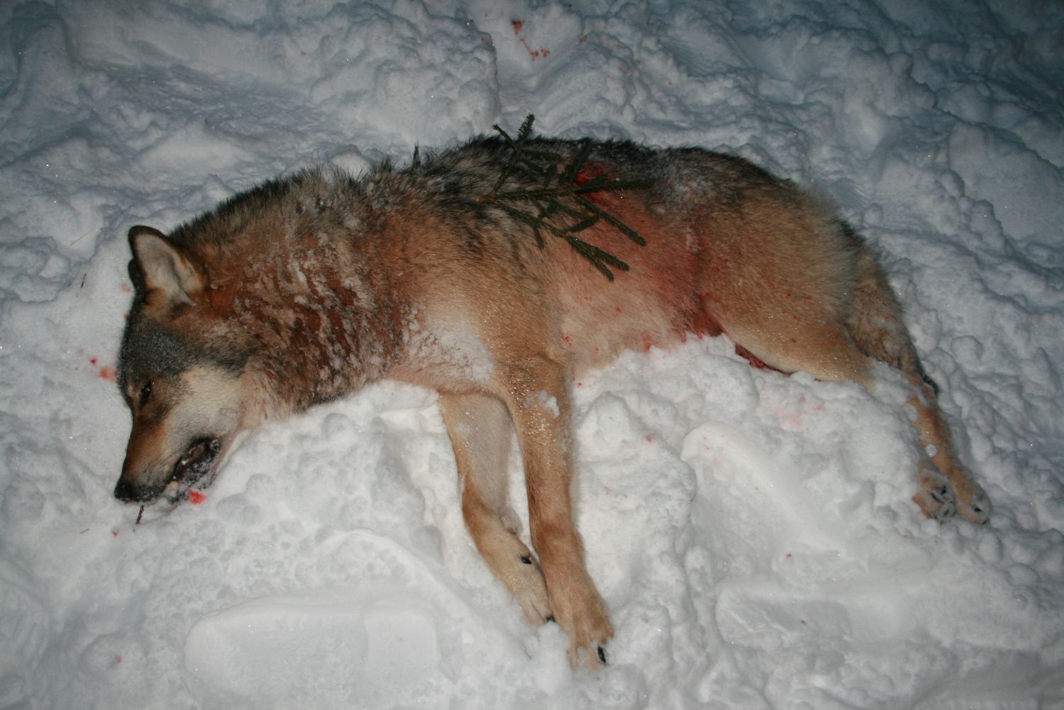 Sammud sinna, kus oli ja uurima, kas sai ikka pihta. Esialgu polnud midagi näha, vaid jäljerida ja hulga kartetside poolt läbistatud oksi lumel. Läks jälle, mõtlesin ... oi kurja, juba teist korda täna ebaõnn või...
