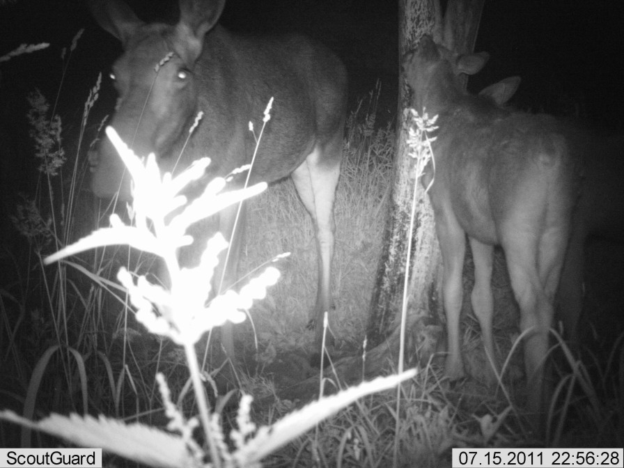 Eelmisel reedel kõndisin pikku kraavi, mis enamasti kinnikasvanud ja mõne savise lombiga kuiv kanal. Kahelpool kõdusoometsad. Ühtäkki 20 sammu kaugusel pruunid kõrvad... ja põdravasikas keset päeva ühes lombis kümblemas. Nagu metssiga tavaliselt. Ootasin ja vaatasin. Kuulsin vasemal suuremat sahinat, siis köhatasin. Alles pika usutlemise peale silkas vasikas pikku kraavi ja siis ilmselt ema suunas võssa. Oli teine juba üsna suur ja kiire.