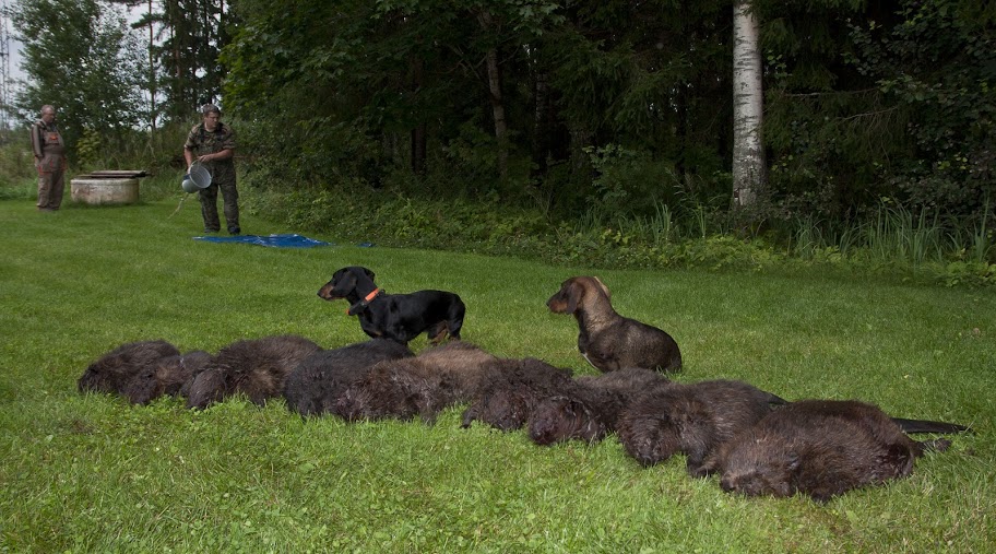 kolme päevaga tänu koerale 9 looma kotis.kahjuks kaotas koer veerand kõrvast,koeraks saksa jahiterjer