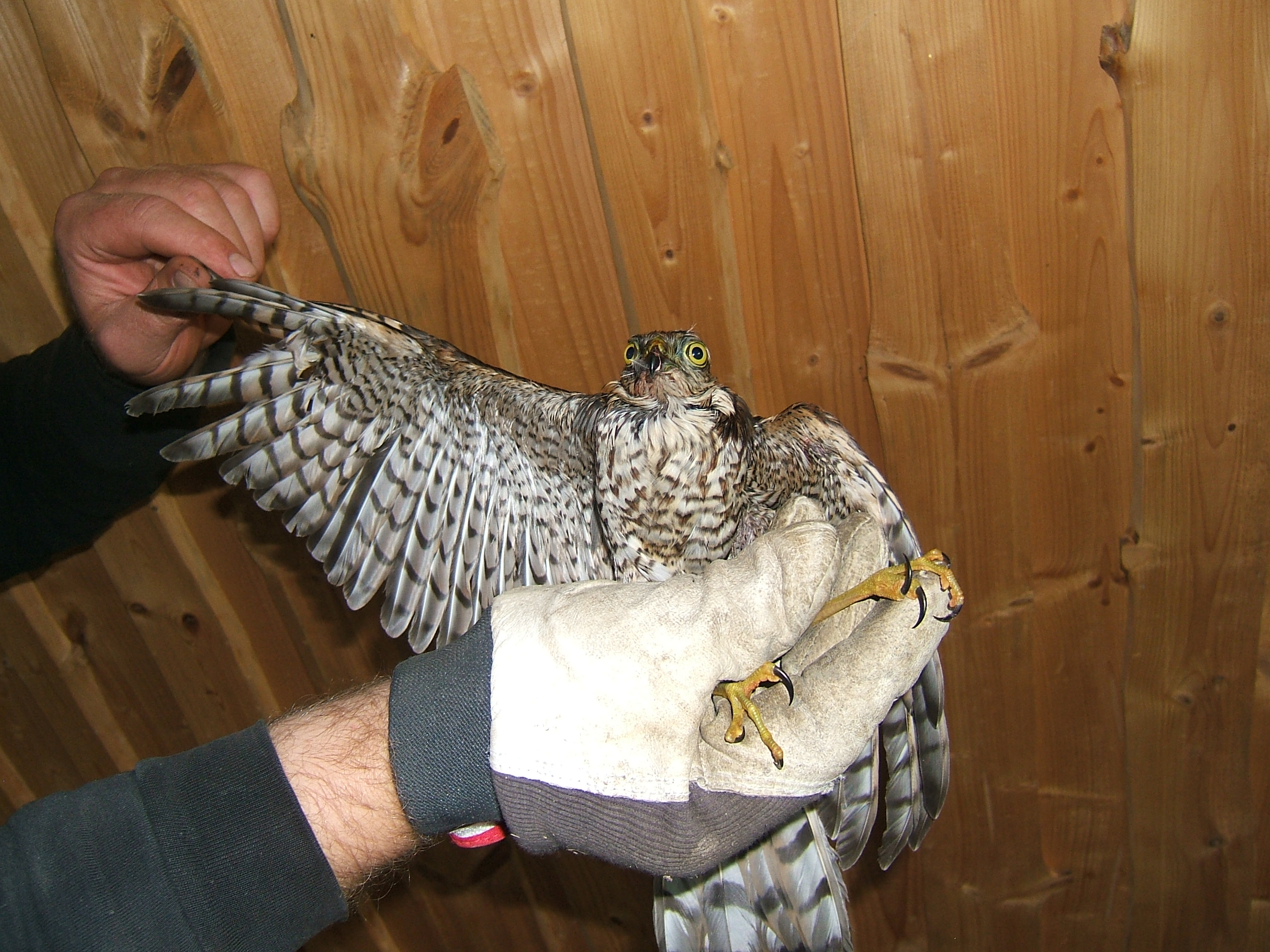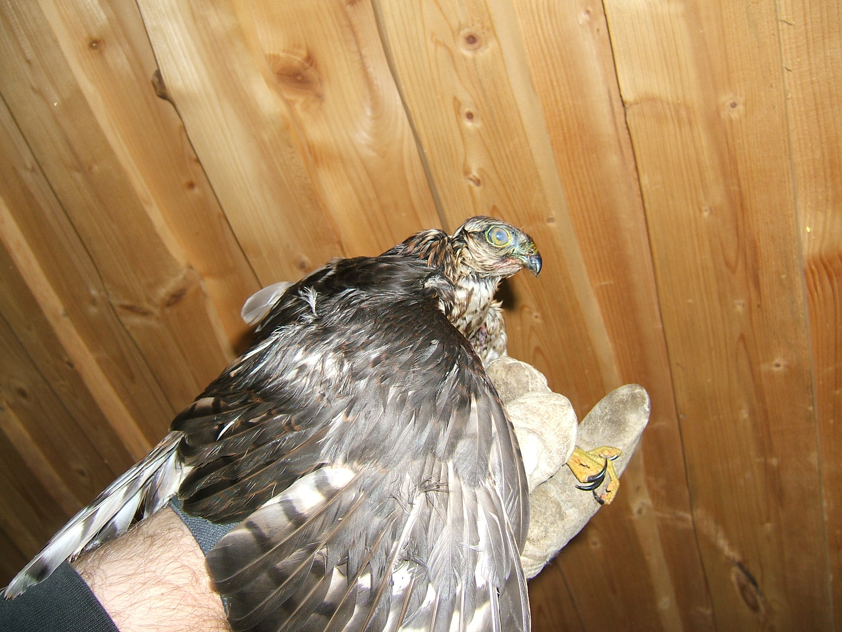 Hakkas kõvasti kargama oma kastis. Tegime uue lennuvõime katse :) . Nõks longates lendas, aga hullu ei tundunud olema. Pani kohe sadakond meetrit eemale puude otsa. Pisitütrelt sain kärki, et linnu "minema lasin". Mälestuseks küüntega läbi torgitud sõrmenahad. Tunne, nagu näpuverd oleks mitme nõelaga korraga võetud.... Suht agressiivselt oli meelestatud. Kui käe kasti panin, kargas jalgupidi kallale. Nokaga äsas ka, aga see oli suht leebe näpistus.