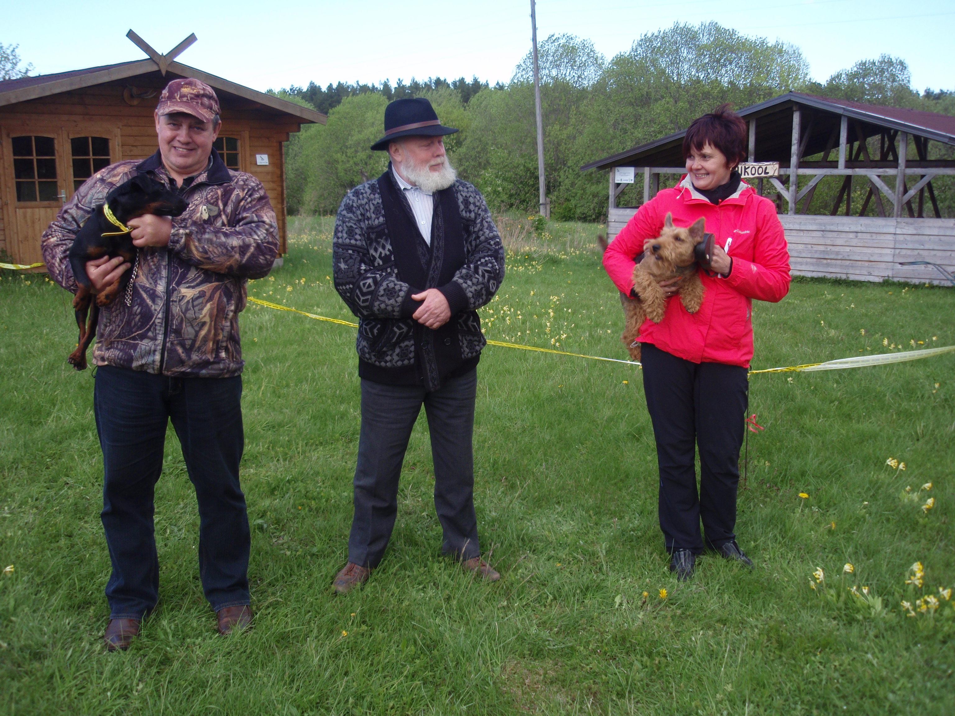 Sellega on vist nii,et annad näpu,võtavad käe,jala,käpa ja kogu ülejäänu ka :wink: .Ühesõnaga sõitsime pea 500km maha ja käisime Lätis urukatset tegemas.Tore oli (y) ,kuigi päev venis päris väsitavalt pikaks.Täpselt ei lugenud aga Eestist oli vist 13 koera.Katsed saab seal teha nii,et peni haugub otse vastu kährikut või mäkra,mitte läbi siibri.Kõvemad vennad löövad ikka hambad sisse ka :) .Eesti koerad olid enamasti kõik tublid.Saksa jahiterjeritest olid kõvad tegijad Indreku Brax ja Aili Ärtu.Brita sai ka oma teise järgu kährikule ja kolmanda mägrale kätte (y) .Imestama pani(või võib-olla ei pannud ka)üks Läti jahiterjer.Koera nägu näitas oma armidega,et tegu on kõva jahikoeraga aga mägrakatset ta ära ei teinudki.Piltidel on siis katseaed ja allesjäänud eestlased :wink:Keskmised kolm püsti seisvat prouat on kohtunikud.