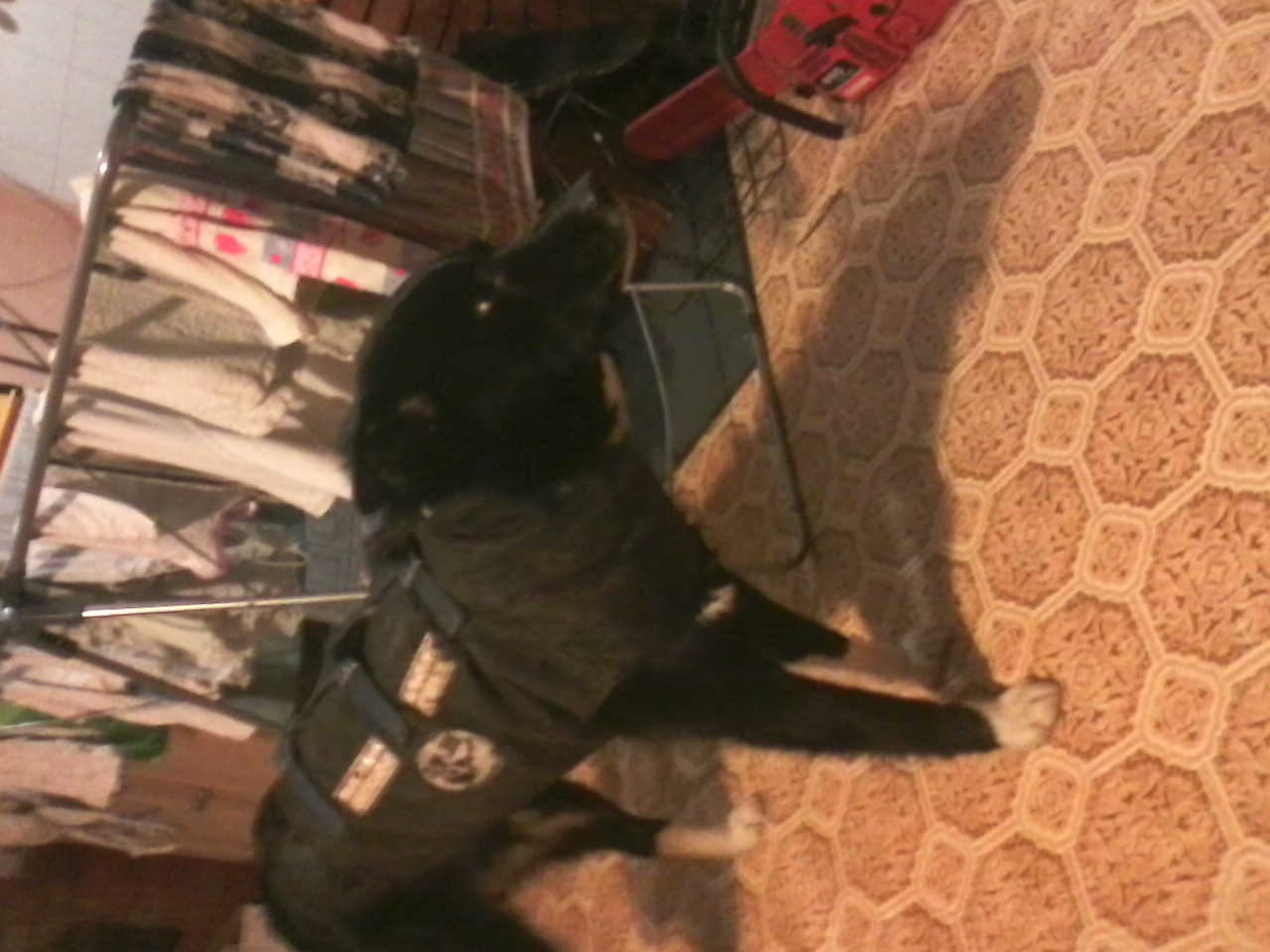 välja .Sellepärast jalaaugud laika jalgu hõõruvadki. Ajasin ka oma kutsikale vesti selga ja üritasin pilti teha ,ei tea kas saan siia ülesse!