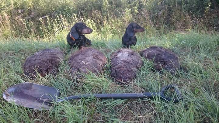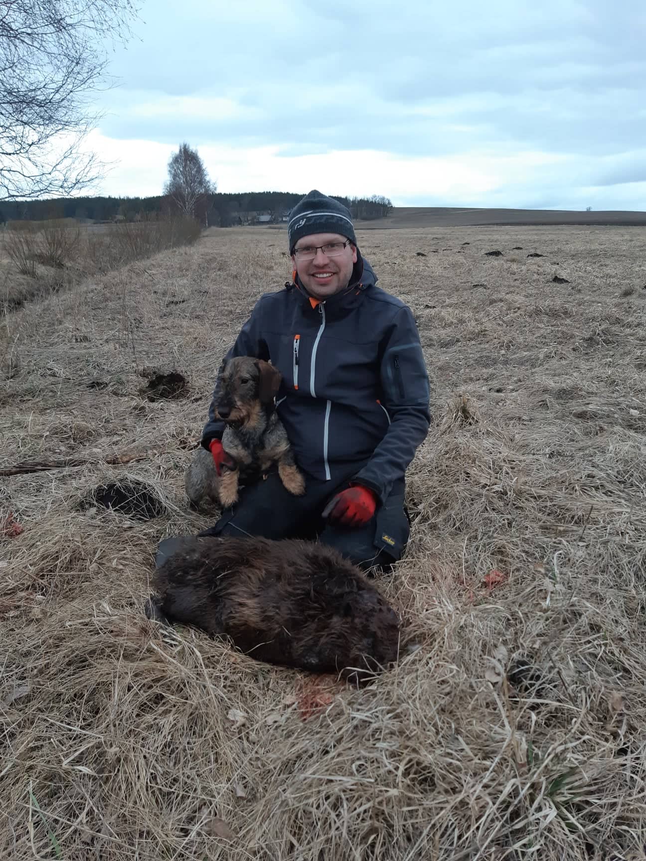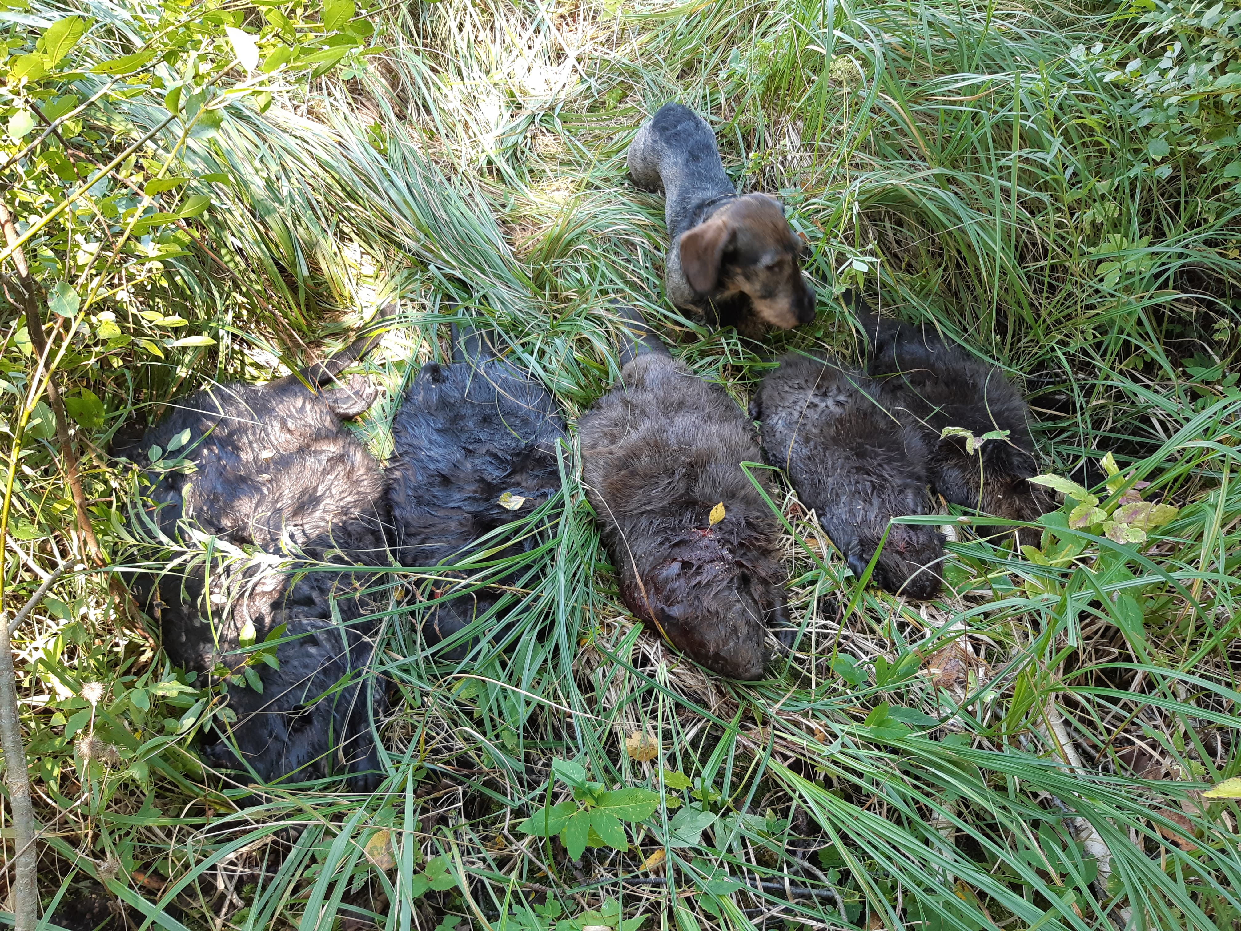 Möödunud laupäeva tulemuseks kaks suurt emakobrast. Kohad olid rasked, ent koerad töötasid väga kenasti. Aasta ja nelja kuu vanune karmikas on järjest tublim ja hakkajam. Ei olnud probleemi urgu minekuga ega ka veest läbikahlamisega. Tundub, et varsti võin oma 9-aastase penskari rahulikumale loorberite reziimile jätta ;)