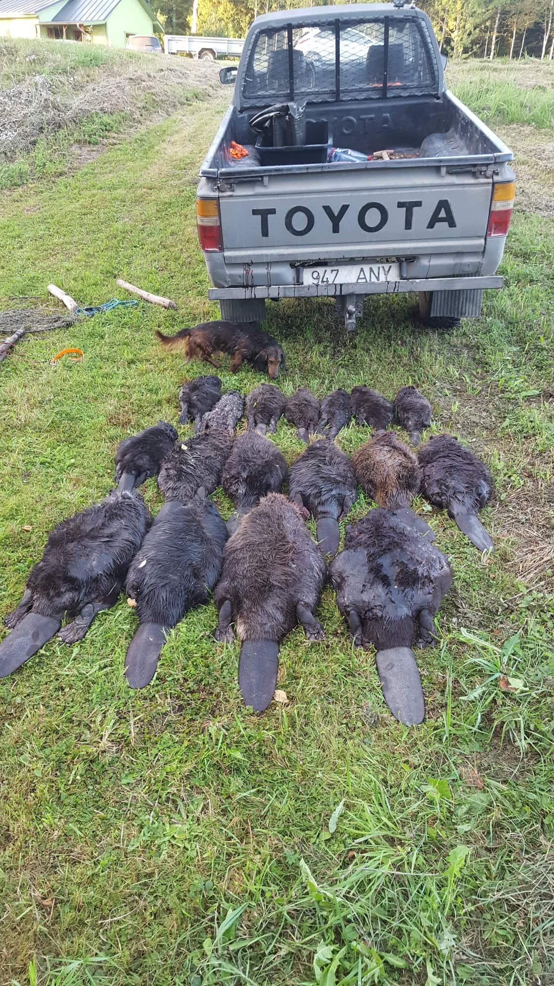 Meie pundi teine jaht. Tulemuseks 1 suur isakobras 21.5 kg. Kohad olid rasked, klassikaliselt kraavid, kus üks suur tamm ja urud ilma pesata. Ühel ojal oli küll hea tugev põhi ja kobrast nähti ka, aga ju sai nii hästi pakku, et enam ei leidnud. Teises kohas puhta turbamäng, vesi sügav ja paljude veealuste käikudega kraav. Kopra püüdmisel said pea kõik seltskonnast kahvapüüdmist harjutada. Tore oli, varsti jälle uus jaht :)