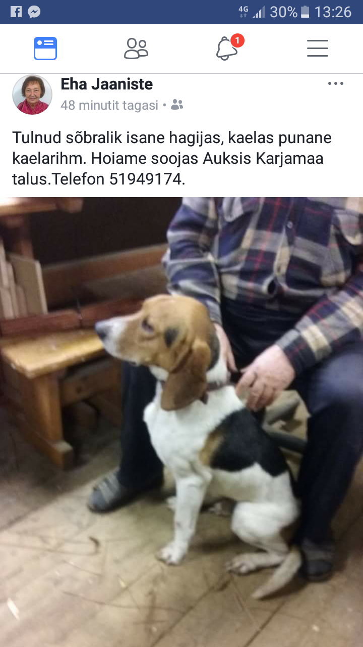 Tulnud sõbralik isane hagijas, kaelas punane kaelarihm. Hoiame soojas Auksis Karjamaa talus.Telefon 51949174.