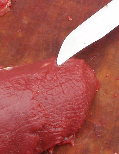 Ma senini suht arvanud, et metskitse parasiidid ikka sisikonnaga eemaldatavad, või paiknevad kõhuõõnes (jällegi, lihtsalt eemaldatavad). Lisaks ninakiin. Nüüd aga sattusin lahkama metskitse (maks oli ussitanud ja selliseid loomasid, kellel maks ussitanud, paari viimase aasta jooksul näinud päris palju), kelle reielihsatest ledsin paelusside larve (põiekesed, kus on valge "täpp" sees). Hakksin asja uurima, teise tagajala lihastes sama lugu, lisaks siis ka seljafileedes. See võtab nõksa mõtlema, enne kui kitsest pooltoorest shaslõkki teha (mis on mahlane ja maitsev) või steiki, või kus kohast koer ussi korjata võib. Müügi teemal ka, kui ma teen nt ülevaatust, kuidas ma peaks aru saama, et miski selline jama. 1 võimalus, kui maks ikkagi ussitab, siis loom müüki ei lähe, aga enamasti ikkagi liha korras. Aga kui hilisemal vaatlusel loom nülitud ja siis öeldakse, et mis jama te müüte... Paar pilti juurde, maru udused on saanud, aga mingi mulje ikka. Eeldatavasti mingi paelussi larviga tegemist.