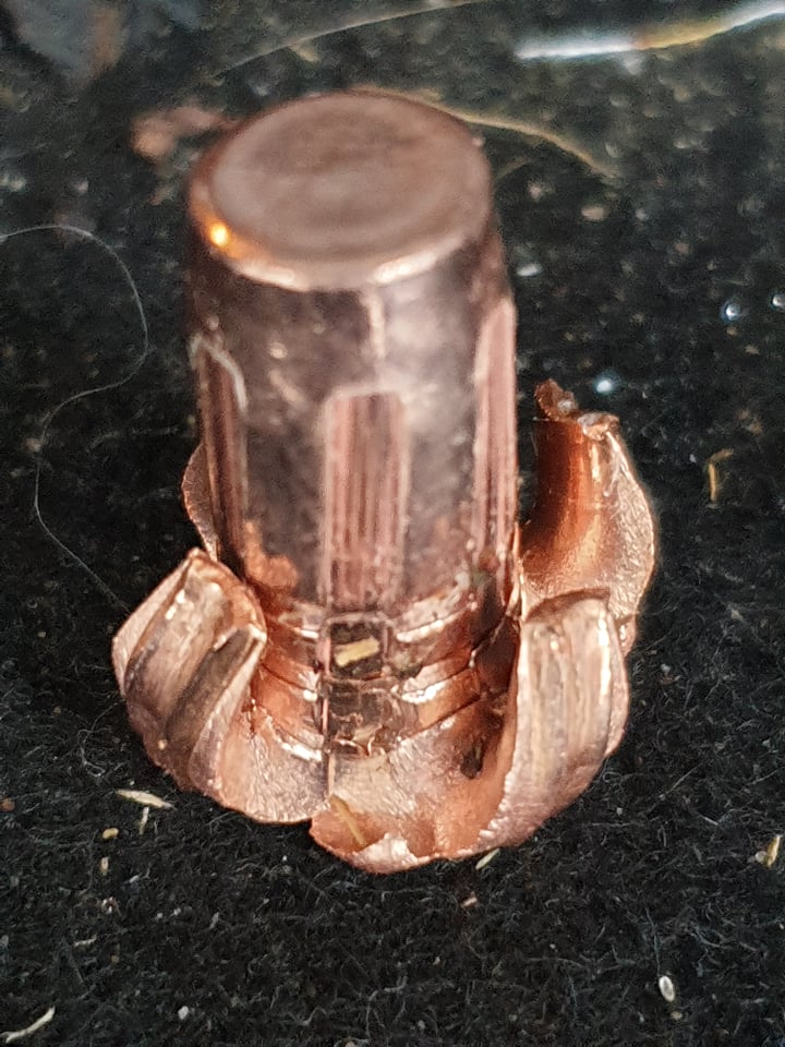 Barnes ttsx nüüd juba pikemalt kasutuses 222, 308, 8x57, 30-06, 7 rem mag, 300win mag ja nüüd ka 9,3x74R avaneb hästi ja loomad kukuvad kohe. Pole vaja väga hulle algkiirusi, 30 kal kuulile ülihea 825ms, 9,3x74R 16,2g kuulile panin N140 55grs ja 731m/s, tulistasin 5l veekanistreid. Esimesed 4 kanistrit plahvatasid ja kuuendas oli kuul sees. Esimesest väljuv auk näitab, et kuul lõpuni avanenud.