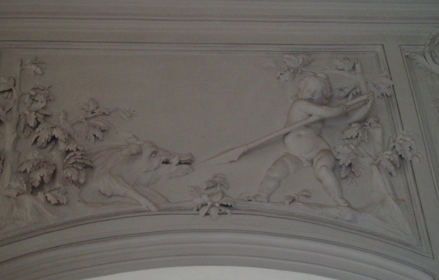 Niipalju, et 4 pilti on ühe saali laekaunistustest, ja need siis jahiteemalised väljanopped. samuti oli mitmes toas jahiteemalisi maale, paar vaadet nendest kah.