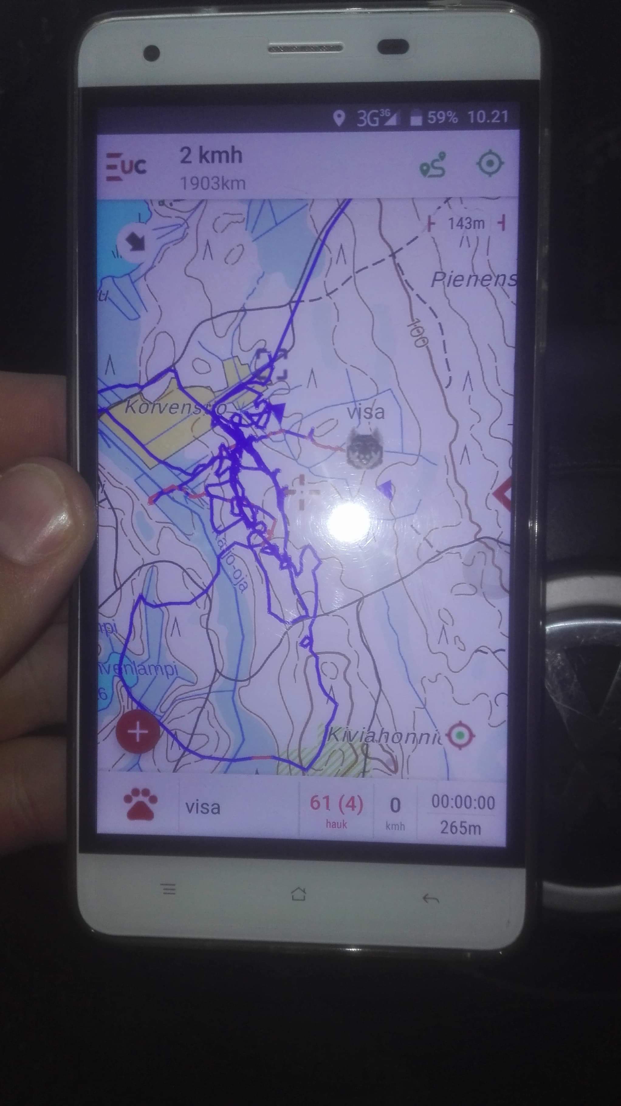 Eile käisime taas Visaga võistlustel. Kahjuks osutuks põdraks noor pull kes lasi ennast haukkuda alles siis kui oli Visat 27,3 km jooksutanud enda järel. Sellest ka kehv punktisaak kuid õnneks piisavat et saada neljas hirv1 ja ühtlasi Visast " käyttövalio" . Võistlusel saavutasime 7 koera konkurentsis 2 koha.