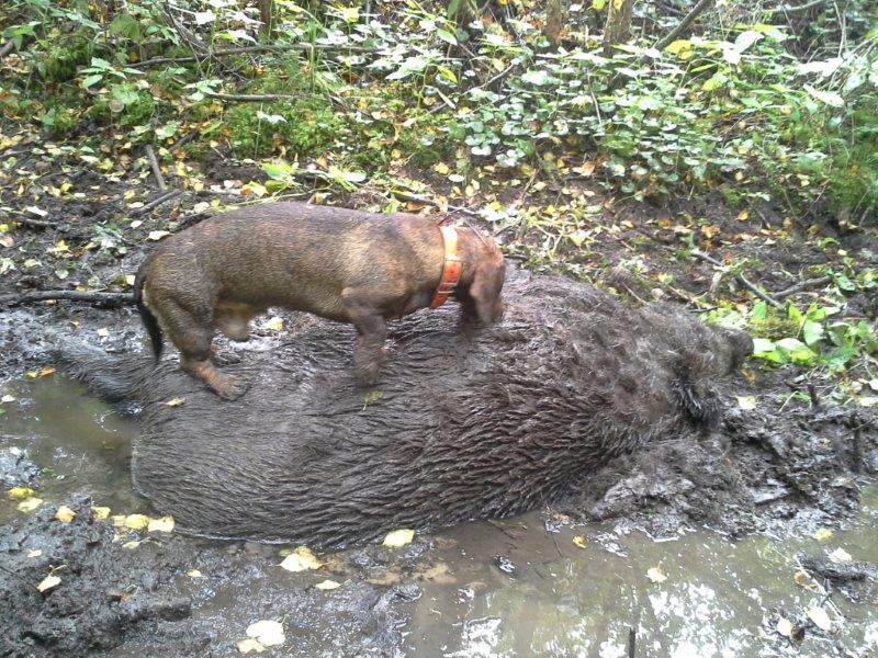 Oojaa, koerast on kindlasti abi. Kui mõningal juhul saab öelda, et ilma koerata oleks jupp janti olnud, et leida, siis mõnedel juhtudel saab öelda suht koht kindlalt, et rebaste ja kährikute söödaks see jäänud ka oleks. Pildil olev siga oli tõsises tihnikus linnulennult laskmiskohast 1km eemal maas ja kange, kui mõned tunnid hiljem leitud sai.