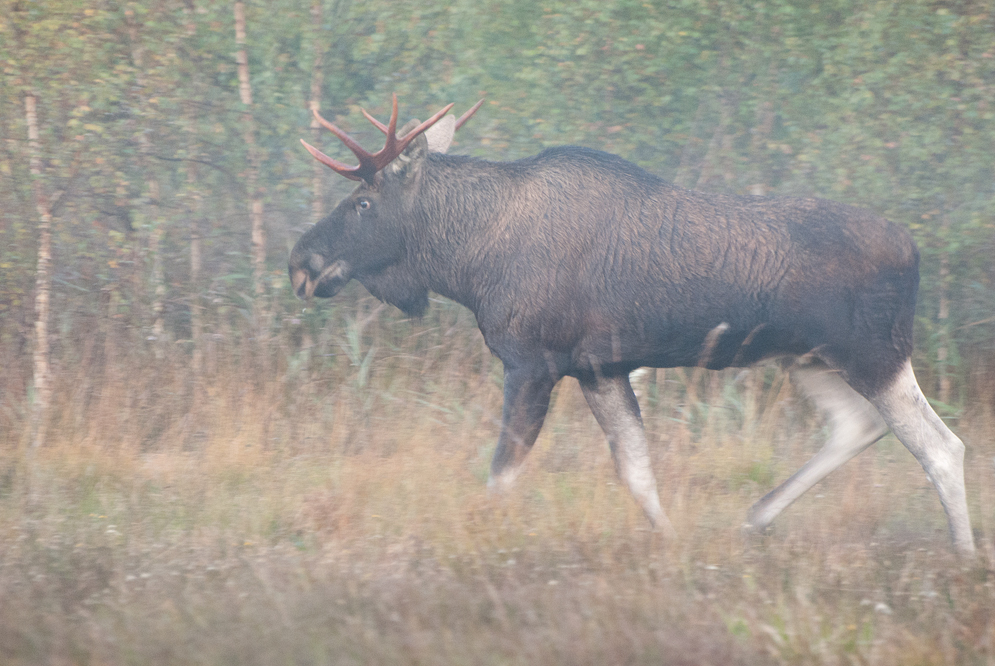 Täna hommikul lootuses hirvi pildistada pidin pettuma. Väga vaikselt mõni üksik pull veel röökis. See-eest olid põdrad väga aktiivsed. Varastel hommikutundidel lugesin 5 erinevat hääleallikat, aga kuna oli veel hämar, siis ei hakanud häält tegema. Kui juba vähe valgem, siis tegin lehma häält. Tuli paar vastust ja see oli ka kõik. Hakkasin juba kodupoole minema ja poole põllu peal tegin veel korra pulli häält. Kus siis läks jälle ohkimine lahti, võtsin koha sisse ja jäin ootama. Põldu sammus korralik 3+4 pull. Tundub nagu vanem loom olevat, ehk oskab keegi täpsemalt öelda?