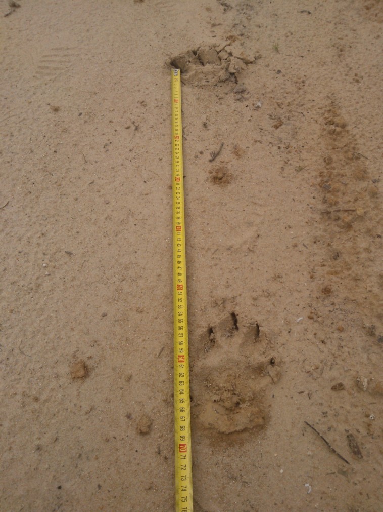 Kuna pühapäeval polnud mõõdulinti käepärast ja eile oli ka sinnakanti asja, sai sportlikust huvist suurema looma jäljerida üle mõõdetud. Tagasihoidliku sörgiga liikunud looma kohta päris toredad mõõdud