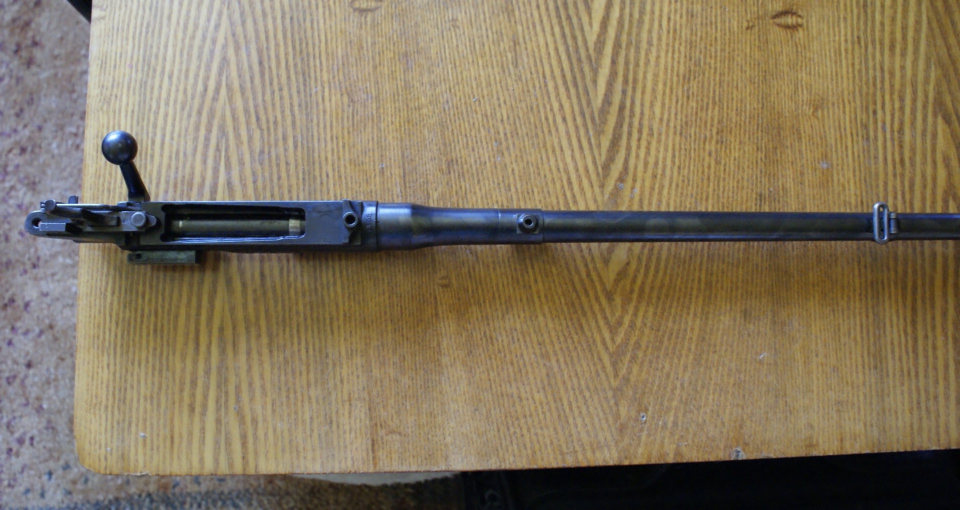 Tere.Tavaliselt kinnitub raud laele kahest kohast.Üks polt salve eest ja teine päästiku kaitse tagant.Sellel relval aga on lisaks umbes 10cm enne lae lõppu kinnitatud raua külge klots mis on poldiga fikseeritud lae külge.Ma ei tea kas se on originaalne kinnitus ja kas ka vajalik ning kas se mõjutab lasketäpsust mille puhul ei saa selle relvaga rahul olla. Nimelt raua soojenedes hakkab loopima.Muus osas on raua ja lae vahe korralik.Ehk raud läbi ja kõik peabki nii olema.Kindlasti leidub keegi kes teab sellisest relvast rohkem ja tore oleks kui räägiks sellest ka minule.