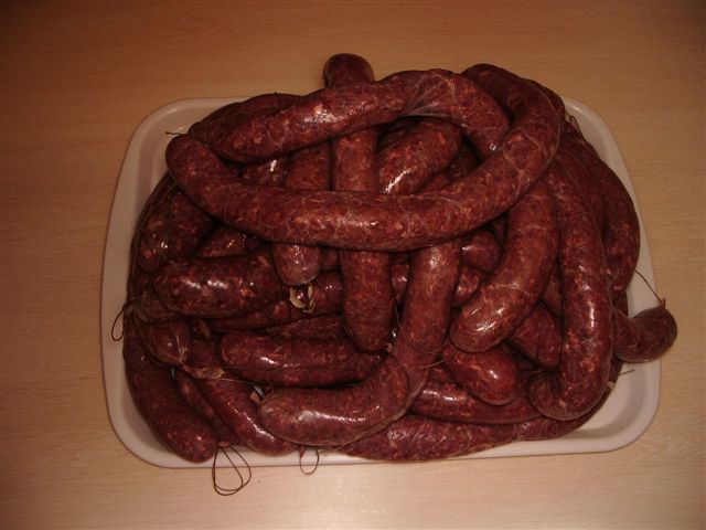 Enne lihamassi soolde ajamist võiks see segatud mass maitseainetega paar tunnikest seista jahedas.Et säästa naisi vorstisidumisest tuleb keerata vorsti 4-5 tiiru päripäev ja ja järgmist vorsti 4-5 tiiru teisipidi.(tahab harjutamist). Kogustest ei oska ma teile midagi öelda sest teen ise kõik toidud tunde järgi.Neid 30mm.15m pikki sooli saab Rakvere lihakombinaadi poest, need on soolatud ja maksid umbes10-15 eeki pakk,peenemaid Pärnust.Mida veel lisada? Küüslaaugu pulbrit toodab firma MEIRA.Kindlasti kasutage kahe erineva looma(kodusiga-põder,metssiga-veiseliha,metssiga-põder) liha ja vahekorras umbes 2osa siga 1osa taid.Tasub kindlasti vorste ise teha siis tead vähemalt mida nad sisaldavad.